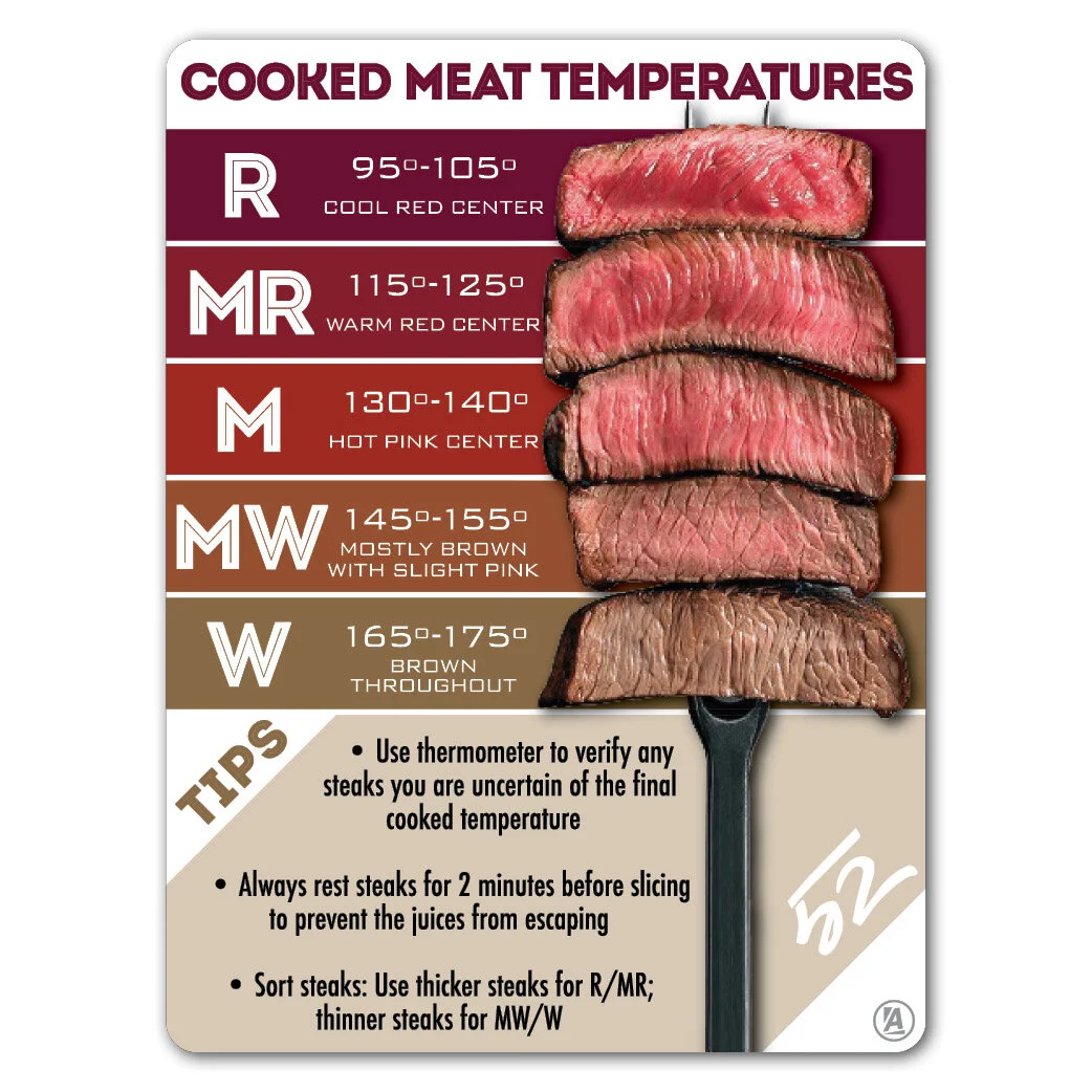 Designed while at Alco Products, this instructional graphic for Seasons 52 provides a clear, visually engaging reference for proper meat temperatures. In the restaurant industry, precision and food safety are paramount, and this design ensures quick and accurate guidance for kitchen staff.