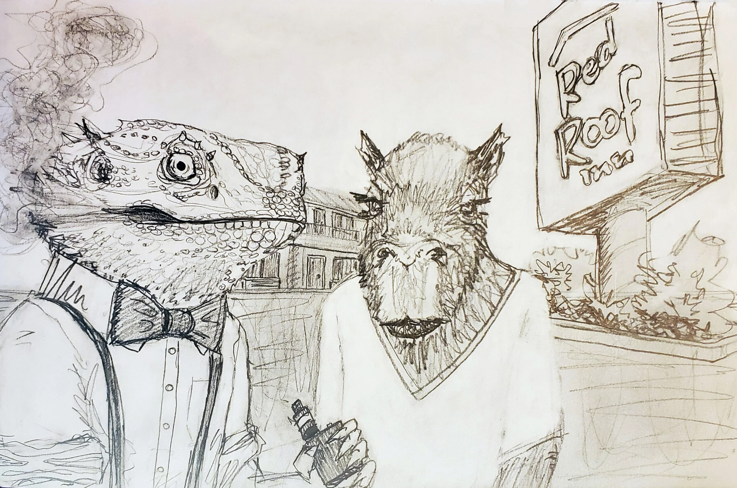 Horned Lizard and Capybara in the Red Roof Inn parking lot.